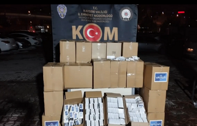 Kayseri'de polis ekipleri tarafından gerçekleştirilen operasyonda 250 bin dal doldurulmuş makaron ele geçirildi.