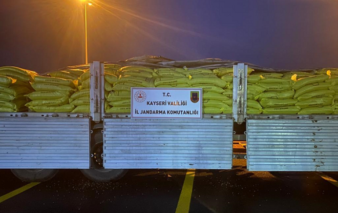 Kayseri'de yol uygulaması yapan jandarma ekipleri bir tır dorsesinde 26,5 ton sahte bandrollü zirai gübre buldu.