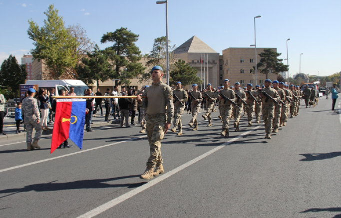 Ardından askeri birlikler ve öğrenciler, tören geçişi yaptı.
