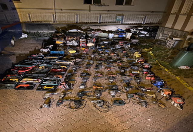 Aramada, ikametten, iş yerinden, kurumdan, otodan ve açıktan olmak üzere 30 hırsızlık olayından çalındığı belirlenen matkap, hızar makinesi ve jeneratör gibi 174 parça eşya bulundu.