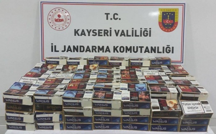 Kayseri İl Jandarma Komutanlığı İstihbarat Şube Müdürlüğünce yapılan istihbari çalışmalarda, İstihbarat Şube Müdürlüğü ve Develi İlçe Jandarma Komutanlığınca ,Kayseri İli Develi İlçesi arasında nakliyecilik yapan 68 XX XXX plakalı araçta yapılan kontrolde 40.000 adet dolu makaron ele geçirildi. Yakalanan şüpheli şahıs hakkında adli işlemlere başlatıldı.