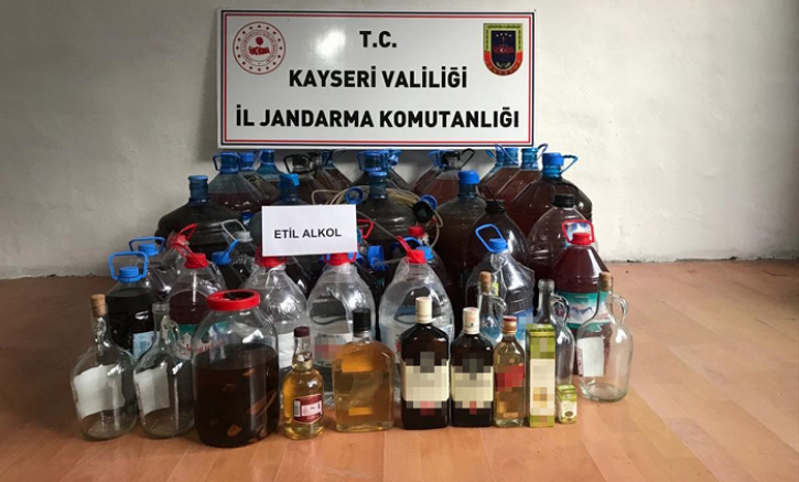 Kayseri'de 510 litre kaçak içki ele geçirildi, bir kişi gözaltına alındı.