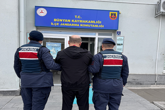 Kayseri İl Jandarma Komutanlığı Suç Araştırma Kısım Amirliği ve Bünyan İlçe Jandarma Komutanlığı tarafından aranan şahısların yakalanmasına yönelik yapılan çalışmalar kapsamında; toplam 9 ayrı suçtan toplam 21 yıl 6 ay 15 gün kesinleşmiş hapis cezası bulunan M.A.isimli şahıs yakalanarak gözaltına alındı.