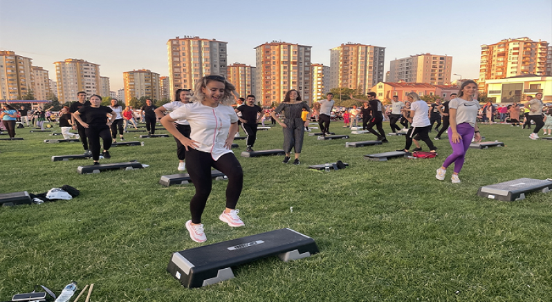 Kayseri Büyükşehir Belediyesi Spor AŞ tarafından düzenlenen etkinlikte, yüzlerce kişi açık havada müzik eşliğinde spor yaptı.