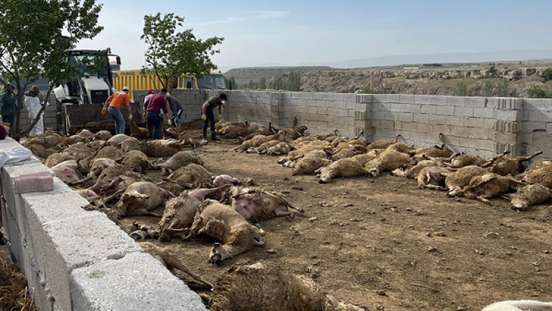 Kayseri'nin Melikgazi ilçesinde ahıra giren kurtların saldırısı sonucu 60 koyun ve 110 kuzu telef oldu.