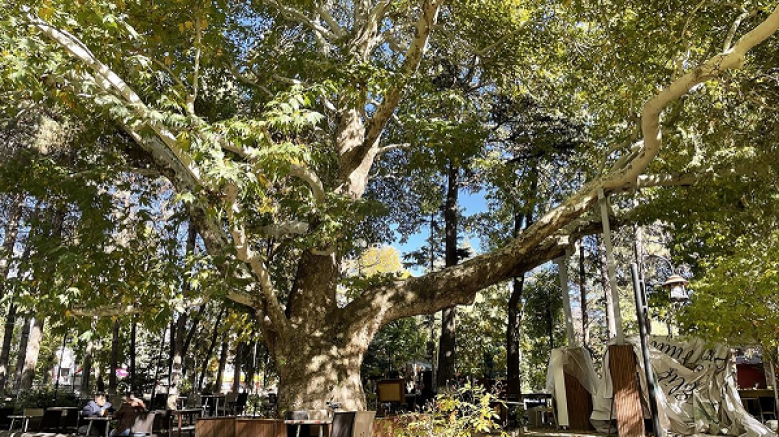 Parka ailesiyle gezmeye gelen Hasan Kaçan da 420 yıllık ağacın yapraklarının sonbaharda yavaş yavaş sararmaya başladığını söyledi.