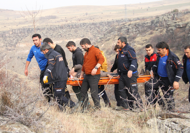 Kayseri'de 3 arkadaşı ile kamp yapmak için gittiği vadide düşüp yaralanan kişi ekiplerce kurtarılarak hastaneye kaldırıldı.