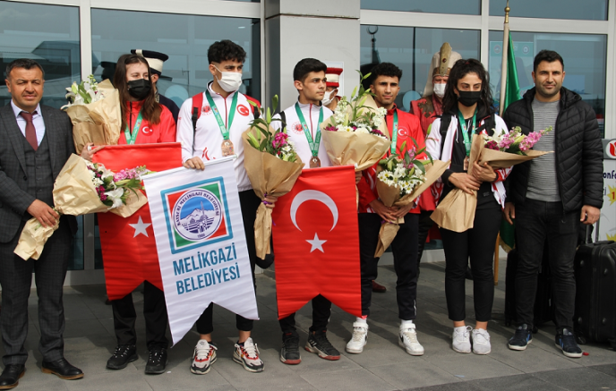 Şampiyonanın ardından Kayseri'ye dönen sporcular, havaalanında Büyükşehir Belediyesi Mehter Takımı eşliğinde çiçeklerle karşılandı.
