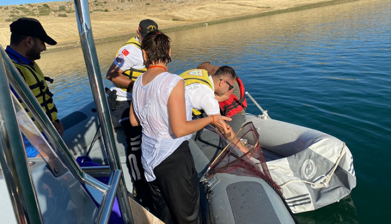 Kayseri'de Develi Gümüşören Barajı'nda botun patlaması sonucu suya düşen kadını, Jandarma Bot Tim Komutanlığı ekipleri kurtardı.