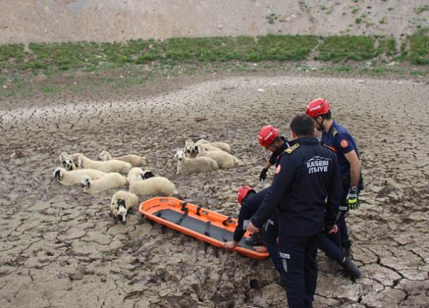 Kayseri Büyükşehir Belediyesi İtfaiye Daire Başkanlığı ekipleri, Kocasinan ilçesinde otlarken bataklıkta mahsur kalan 30 koyunu 2 saat süren çalışma sonucu kurtardı.
