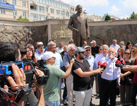 Özkan, eski CHP Kayseri Milletvekili Çetin Arık ve eski CHP İl Başkanı Ümit Özer ile Cumhuriyet Meydanı'nda basın açıklaması yaptı.