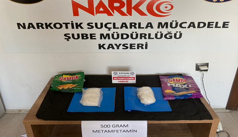 Kayseri'de seyahat ettiği otobüste cips paketine gizlediği 500 gram uyuşturucu ile yakalanan yolcu gözaltına alındı.