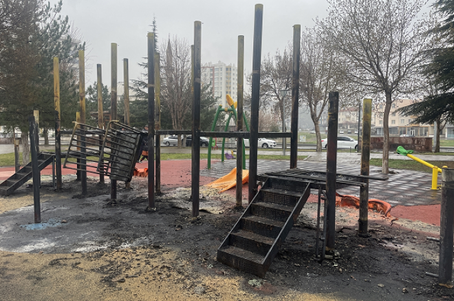 Kayseri'nin Melikgazi ilçesinde çocuk oyun parkı, çıkan yangında büyük çapta hasar gördü.