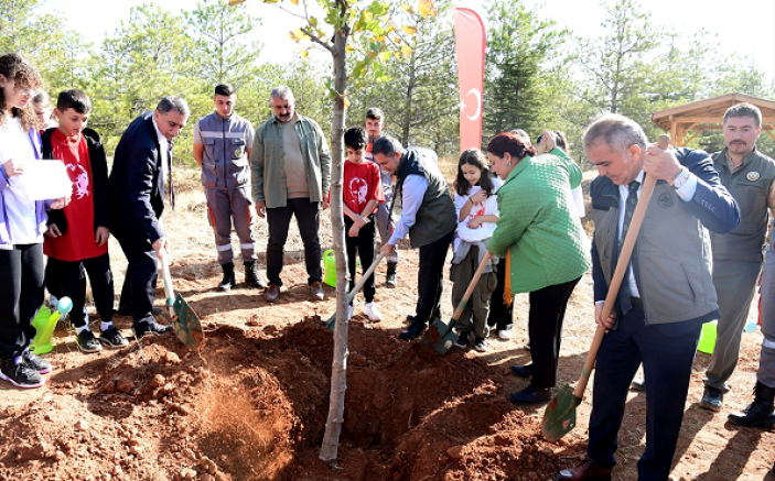 Konuşmaların ardından Vali Buhara ve protokol üyeleri ile öğrenciler, alana 100 fidan dikti.