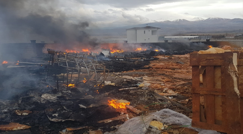Kayseri'nin İncesu ilçesinde demir atölyesinin bahçesinde çıkan yangın söndürüldü.