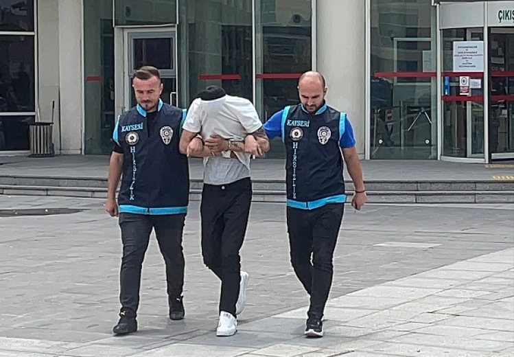 Kayseri Devlet Hastanesinde sağlık kontrolünden geçirilip adliyeye sevk edilen zanlı, hakimlikçe tutuklandı.