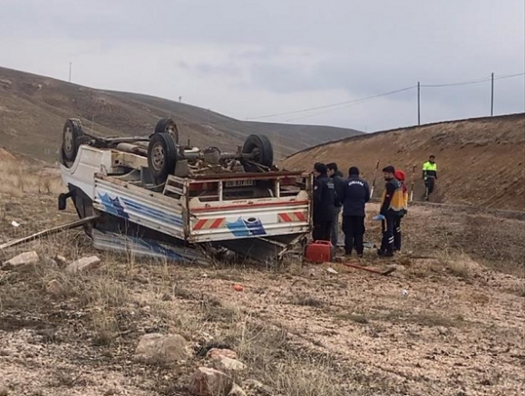 Kayseri'nin Pınarbaşı ilçesinde devrilen kamyonetin sürücüsü hayatını kaybetti.
