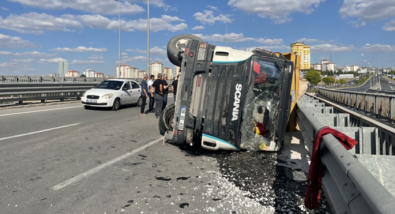 Kayseri'de mıcır yüklü kamyonun devrilmesi sonucu sürücü yaralandı.