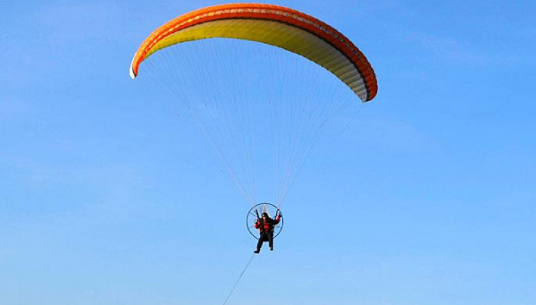 Akçakaya Mahallesi'nde içerisinde iki kişiyle havalanan paramotor kalkıştan hemen sonra motorunda meydana gelen arıza nedeniyle inişe geçti.