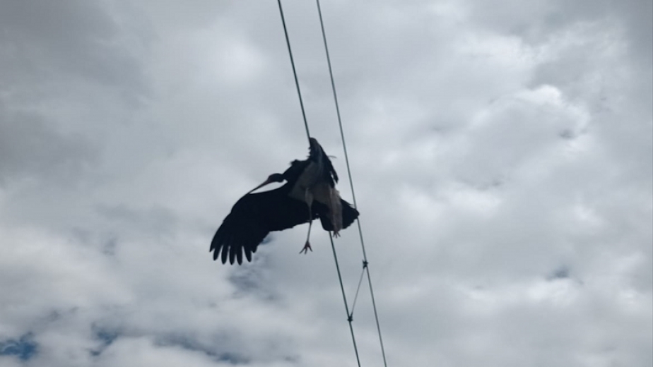 Türkiye Cumhuriyeti Devlet Demiryolları (TCDD) ekipleri, Karagöz-Yeniçubuk arası 472. kilometrede bir kara leyleğin katener hattında tele takıldığını gördü.