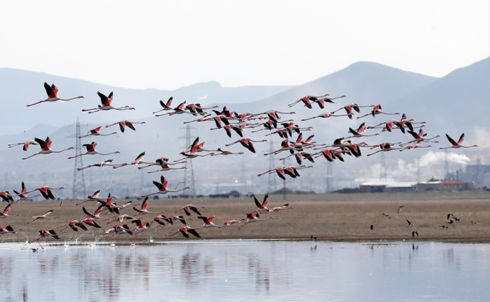 Halk arasında "Allı Turna" olarak da bilinen flamingolar, dinlenme ve beslenme yeri olarak kullandıkları kent merkezine 13 kilometre uzaklıktaki sazlığa baharın gelmesiyle adeta akın etti.