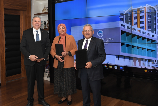 Kayseri Büyükşehir Belediye Başkanı Memduh Büyükkılıç ile hayırsever Mehmet İştahlı arasında Hasta Yakınları Misafirhanesi'ne katkı sağlanmasına yönelik işbirliği protokolü imzalandı.