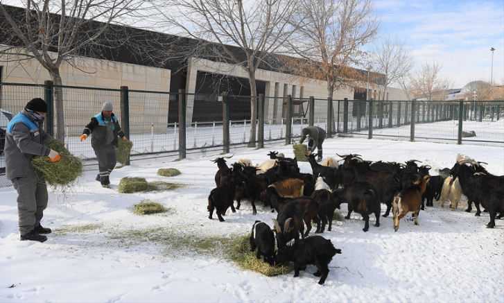 Karın etkili olduğu kentte, bahçede kış rasyonu (Bir hayvanın 24 saatlik periyot için besin maddeleri ve enerji gereksinimini sağlayan toplam yem miktarı) uygulanıyor.