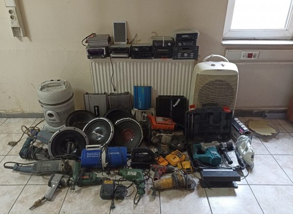 İkamette çalıntı olduğu değerlendirilen matkap, oto teybi ve ütü gibi bir çok malzeme ele geçirildi.
