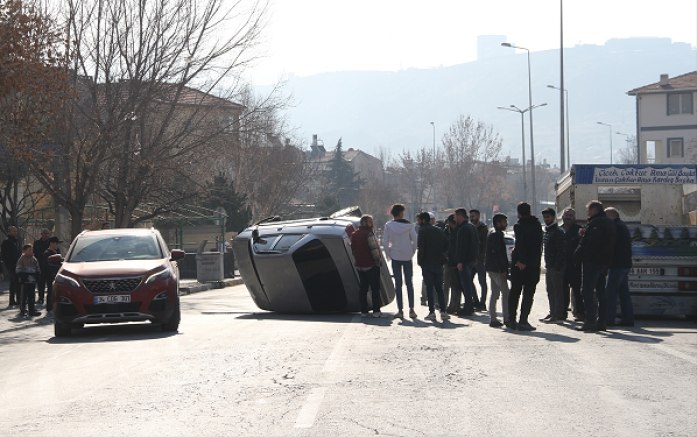 Y.E. yönetimindeki 38 AFN 495 otomobil, Osmanlı Mahallesi İpekten Sokak'ta, V.T. idaresindeki 66 AAH 155 plakalı kamyonet ile çarpışarak devrildi.