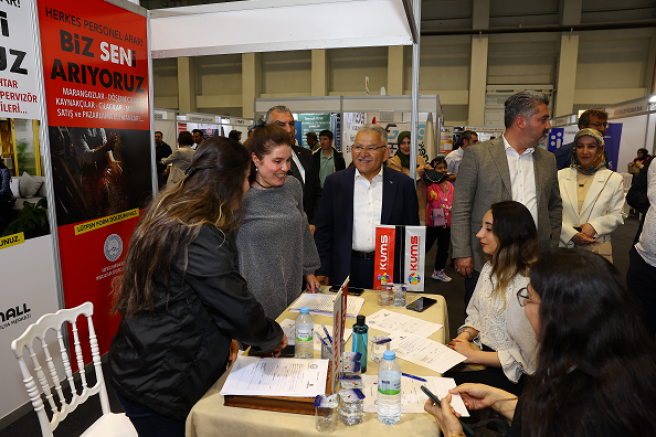 Daha sonra firmaların fuarda kurdukları stantları gezen Büyükkılıç, firma yetkililerinden yapılan çalışmalar hakkında bilgiler de alırken, iş arayanlar ile işverenler arasında yapılan görüşmeleri de takip etti.