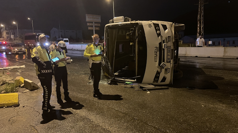 Kayseri OSB'ye işçi götüren C.D'nin kullandığı 38 P 0430 plakalı midibüs, merkez Melikgazi ilçesi Fatih Sultan Mehmet Bulvarı'nda devrildi.