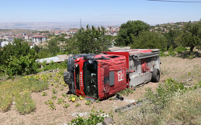 Kayseri'nin Hacılar ilçesinde yangına müdahale için giden itfaiye aracının devrilmesi sonucu 4 personel yaralandı.