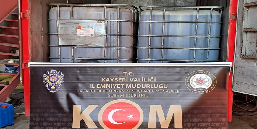 Kayseri İl Emniyet Müdürlüğü Kaçakçılık Suçlarıyla Mücadele Şube Müdürlüğü ekipleri tarafından Kocasinan ilçesi Oymaağaç Mahallesi'ndeki adrese ve bir kamyona yapılan operasyonda 12 ton karışımlı akaryakıt ele geçirildi.