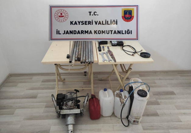 Valilikten yapılan açıklamada şu bilgiler kaydedildi.''Kocasinan İlçesi Kaş Mahallesinde 01.06.2024 günü kaçak kazı yapıldığına dair alınan duyum üzerine yapılan takip sonucu, A.A.,O.T., H.Ş., F.A., M.K. ve M.B. isimli şahısların kaçak kazı yaptıkları esnada suçüstü yakalanmıştır. Şüpheli şahıslarla birlikte ele geçirilen 1 Adet alan tarama cihazı ve aparatları, 1 Adet el karot makinesi, 9 adet 74,5 cm uzunluğunda karot makinesine takılan boru, 2 adet boru anahtarı, 1 adet 10 metre uzunluğunda kameralı yeraltı görüntüleme endoscope kablosu, 1 adet RS Pinpointer cihazı muhafaza altına alınmıştır. Olayla ilgili tahkikata başlanılmıştır.''