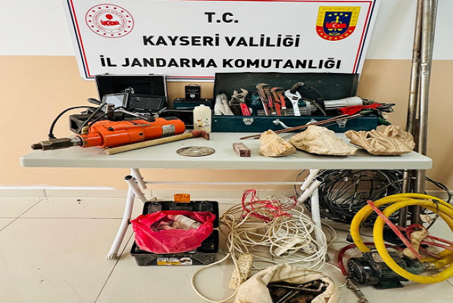 Kayseri'de jandarma ekipleri tarafından yapılan çalışmalarda kaçak kazı yapan 5 şahıs yakalandı.