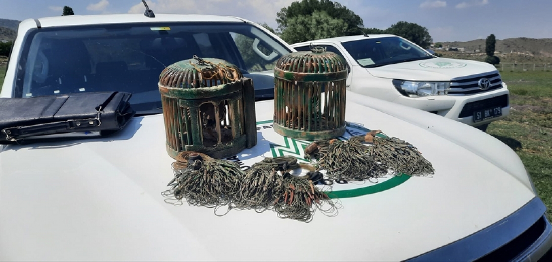 Avcının yanında bulunan 5 keklik tuzağı, 2 kafes ve 2 kekliğe ekiplerce el konuldu.