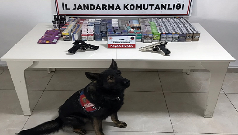 Ayrıca, Gesi Mahallesi'ndeki bir ikamette, 745 paket bandrolsüz sigara ve 2 ruhsatsız tabanca ele geçirildi.