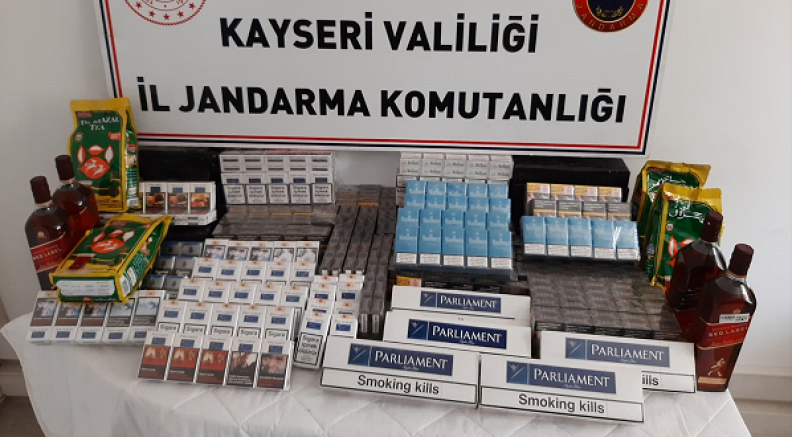 H.K, A.A, A.T. ve Y.İ'nin araçlarında yapılan aramalarda, 725 paket bandrolsüz sigara, 4 litre kaçak viski ve 3 kilogram kaçak çay ele geçirildi.