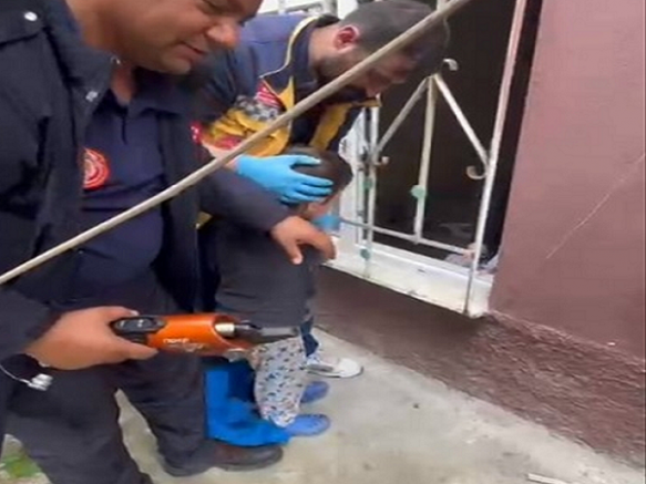 Kayseri'de kafası penceredeki demir korkuluklara sıkışan 7 yaşındaki çocuk itfaiye ekiplerince kurtarıldı.
