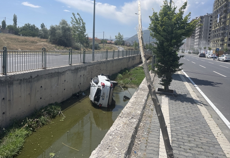 Çarpışmanın etkisiyle kontrolden çıkan 38 ER 837 plakalı otomobil, yol kenarındaki kanala düştü.