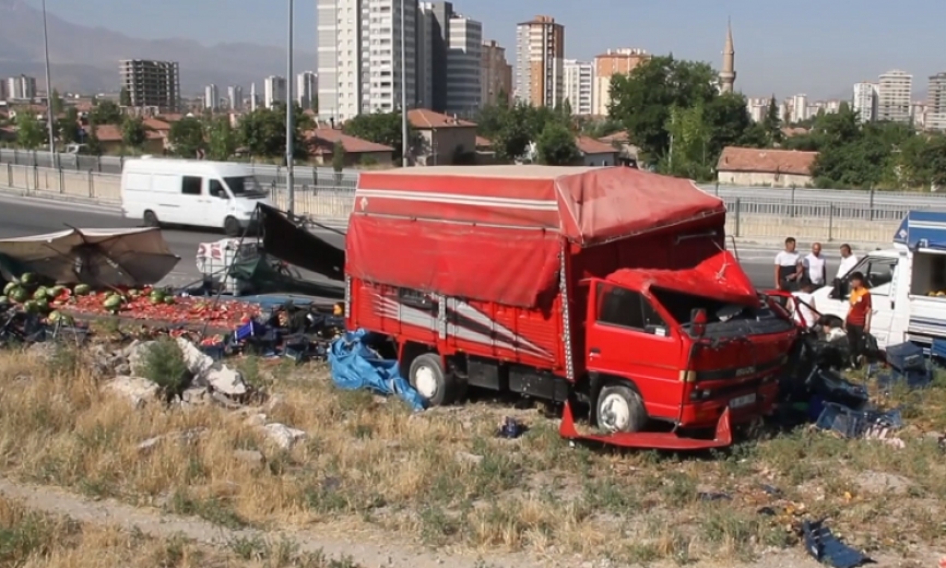 Kayseri'nin Melikgazi ilçesinde park halindeki karpuz yüklü kamyonete çarpan otomobilin sürücüsü hayatını kaybetti.