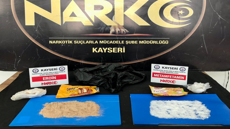 Kayseri'de yolcu otobüsüne düzenlenen operasyonda kek ambalajına uyuşturucu gizleyen zanlı gözaltına alındı.