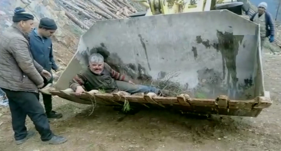 Geçen yılki yangında zarar gören ağaçları kesmeye çalışırken ağacın üzerine devrilmesi sonucu ayağından yaralandığı öğrenilen Muhammed Ali Akçakoca, belediyeye ait iş makinesi yardımıyla güvenli alanda bekleyen ambulansa taşındı.