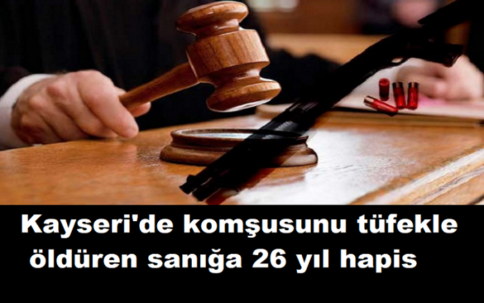 Kayseri'de oynadığı topun otomobiline çarpmasına sinirlenip tartıştığı çocuğun babasını tüfekle öldüren sanık 26 yıl 2 ay 17 gün hapis cezasına çarptırıldı.