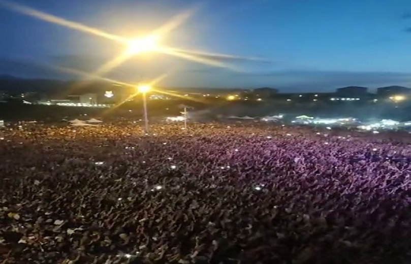 Kayseri Erciyes Üniversitesi bahar şenliğinde alana sığmayan binlerce genç öğrenci tek bir ağızdan İzmir Marşı'nı söyledi.