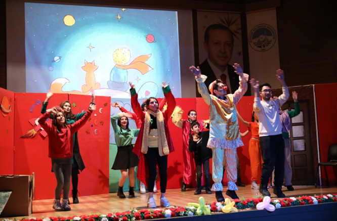 Kayseri'de Melikgazi Belediyesi'nin karne şenliği kapsamında düzenlediği "Küçük Prens" tiyatro oyunu minik tiyatro severlerle buluştu.