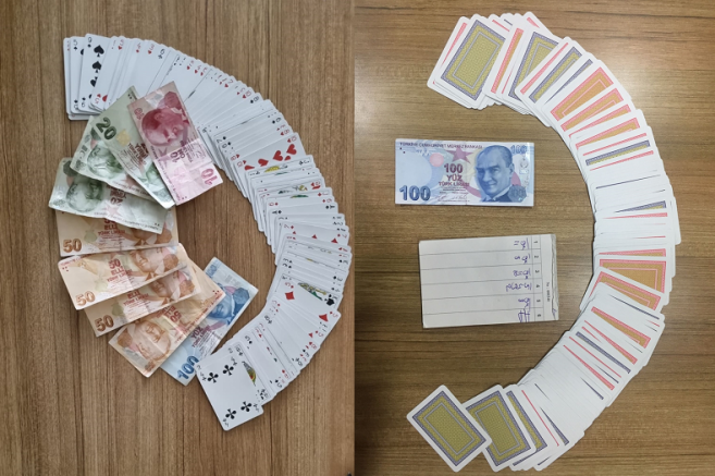 İşletme sahipleri hakkında adli işlem yapılan operasyonlarda 470 lira ile oyun kartları ele geçirildi.