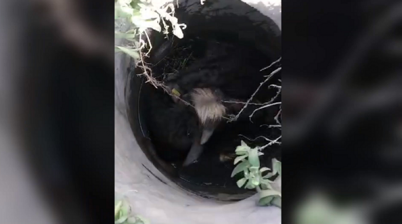 Kayseri'de arazide mantar toplayanların bulduğ boş su kuyusuna düşen manda yavrusu kurtarıldı.