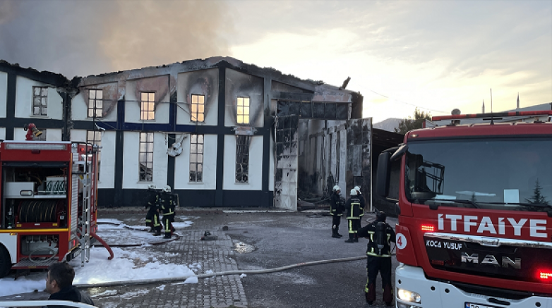 Çatı kısmında kısmi çökme meydana gelen fabrikada ekiplerin yangını kontrol altına alma çalışmaları sürüyor.