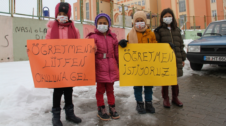 Kayseri'nin Pınarbaşı ilçesinde ilkokul öğrencileri ve aileleri, resen okullarına atanan öğretmenlerin durumu mahkemeye taşıyarak göreve başlamaması üzerine protesto eylemi yaptı.